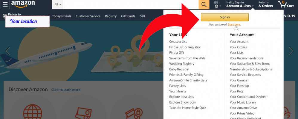Secondly, you must create the account with Amazon (Not bank account, it is the client account) before entering and using the Amazon web store. Please noted that if you already have account with Amazon you just sing In, but if you do not have you should Sign Up or click the word Start Here.
